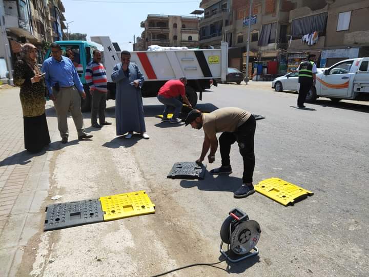 تفاصيل تركيب مطبات صناعية بطريق نهطاى في الغربية (صور)