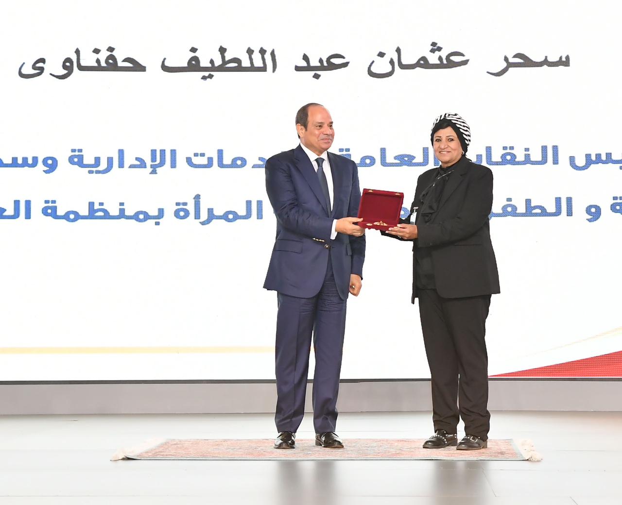 كما وجه الرئيس السيسي كلمة لعمال وشعب مصر فى هذه المناسبة القومية والعالمية، فضلا عن قيامه بتكريم عدد من قدامى العمل النقابى والعاملين المتميزين فى أدائهم بمنحهم وسام العمل من الطبقة الأولى وعدد من قدامى العاملين بوزارة القوى العاملة بمنحهم نوط الامتياز بهذه المناسبة.
