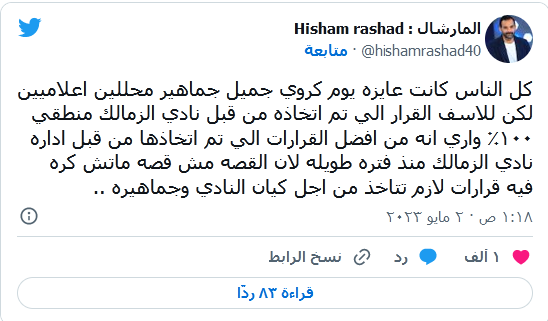 الزمالك، بمجرد إعلان نادي الزمالك، حامل لقب الدوري المصري الممتاز لكرة القدم، مساء أمس الإثنين، عدم المشاركة في كأس السوبر المحلية أمام الأهلي في أبو ظبي بالإمارات، يوم الجمعة المقبل، بداعي وجود “محاباة” من الاتحاد المحلي ضد ناديه، تفاعل الآلاف من مستخدمي موقع التواصل الاجتماعي تويتر مع القرار، حتى أصبح هاشتاج #الزمالك، تريند رقم واحد في مصر، من حيث الموضوعات الأكثر قراءة.