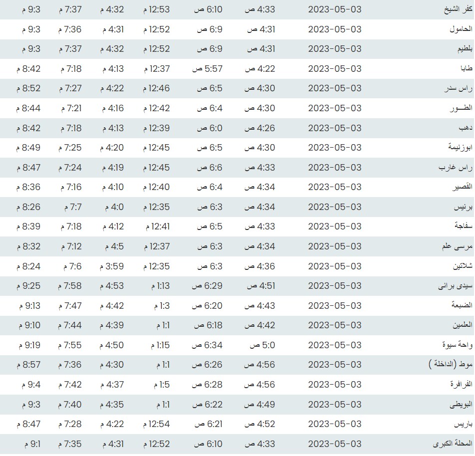 مواقيت الصلاة اليوم بتوقيت القاهرة