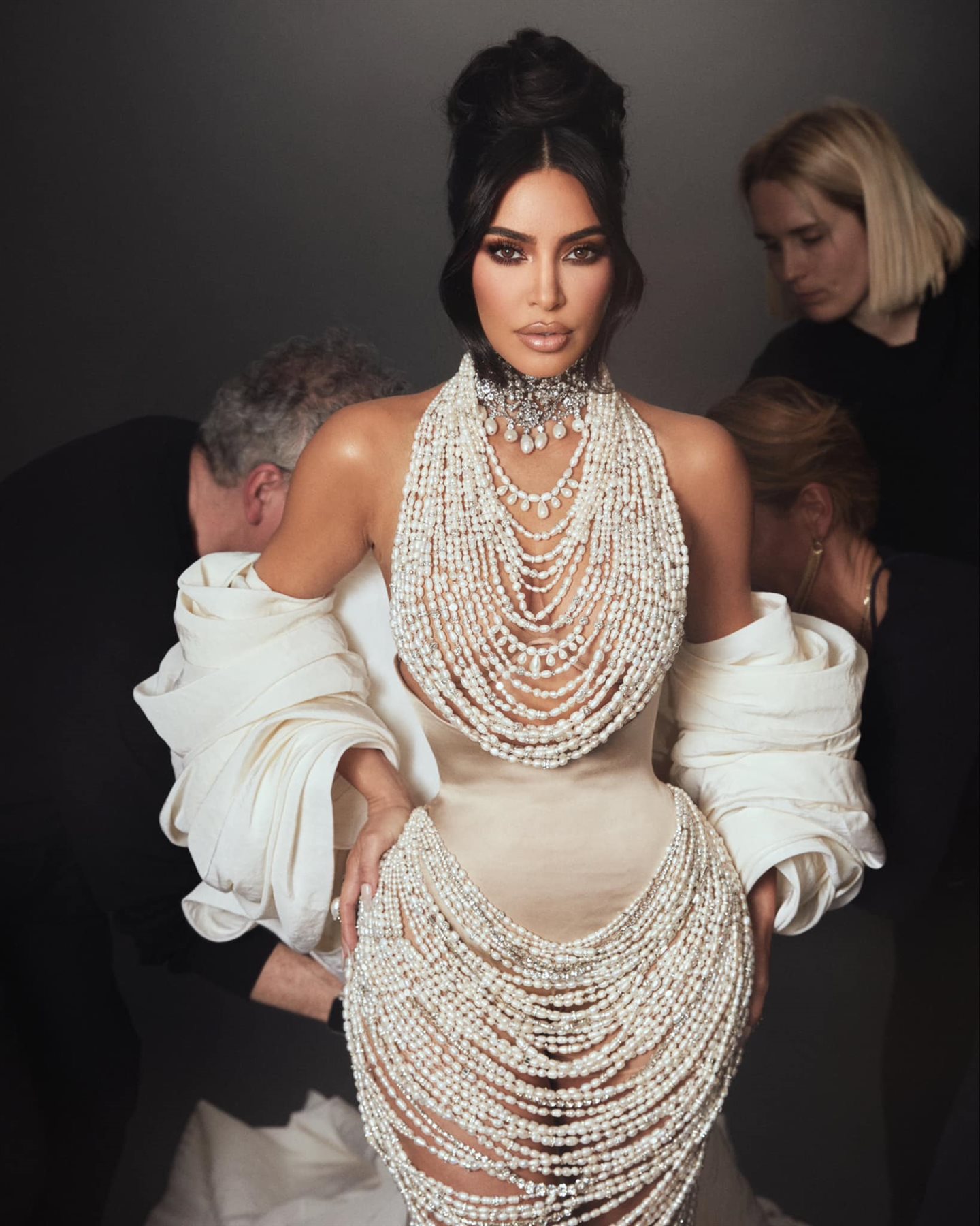 وكانت من أبرز إطلالات النجمات بحفل 2023 Met Gala هي إطلالة نجمة تليفزيون الواقع كيم كارداشيان أطلت بفستان مرصع بـ 66 ألف لؤلؤة … يتكون من 50 ألف لؤلؤة من المياه العذبة و16 ألف لؤلؤة كريستالية واستغرق ألف ساعة لصناعته من دار الأزياء العالمية Schiaparelli.