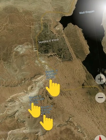 وقال هايدي فاروق إن خريطة العالم هيرست تشير إلى أن خزان الريان مستخدم للتخزين القرني مثل بحيرة تانا وزي بحيرة ألبرت، ويفسر ذلك القمر الصناعي Bing Aerial، ومن خلال صوره نلاحظ أن خزان الريان به ٣ ينابيع للخزان، وهي عين الريان القبلي وعين الريان الوسطاني وعين الريان البحرية.