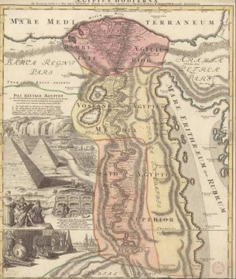 واستعانت هايدي فاروق أيضًا بخريطة العالم الألماني يوهان بابتيست هومان، 20 مارس 1664 - 1 يوليو 1724، الذي اشتهر عنه ولعه الشديد بعلم الجغرافيا، وكان رسامًا عالميًا للخرائط، التي استلهمها من المدرسة اليسوعية، ليرسم خريطة لمصر، رسمها من قراءاته لروايات يوحنا المعمداني عن مصر
