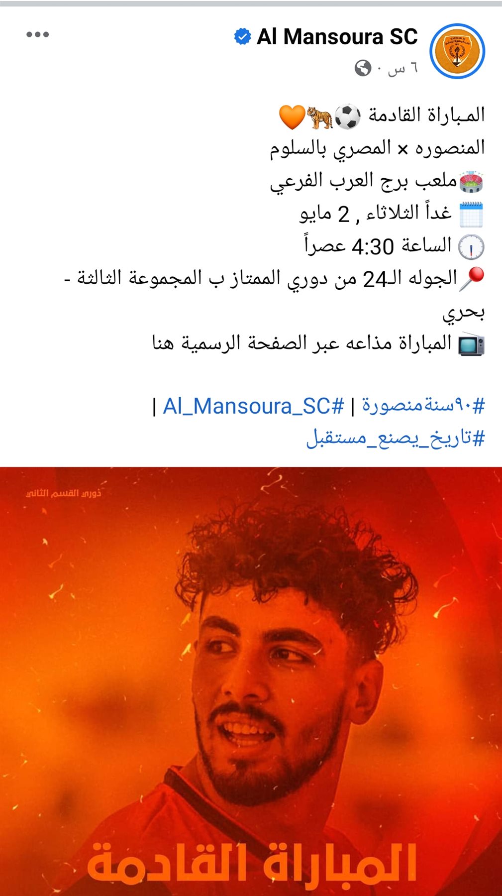 صاحب المركز الثامن المنصورة 31 سيخوض علي ملعبه 3 مباريات ( جمهورية شبين، المجد، دكرنس ) وخارج أرضه 4 مباريات أمام ( المصري بالسلوم، نبروه، هلال مطروح، طنطا)