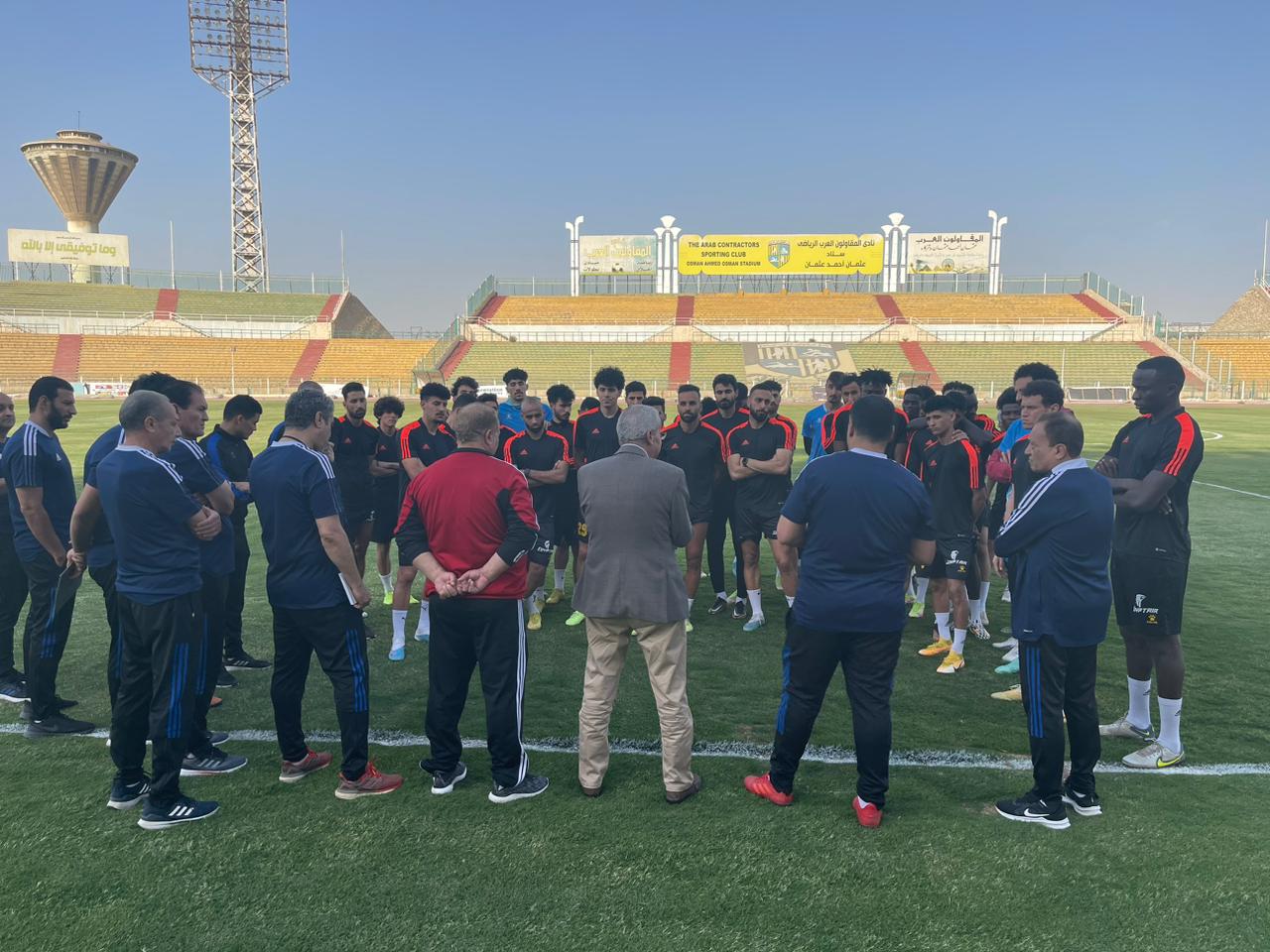رئيس نادي المقاولون يحفز اللاعبين قبل مواجهة البنك الأهلي في الدوري