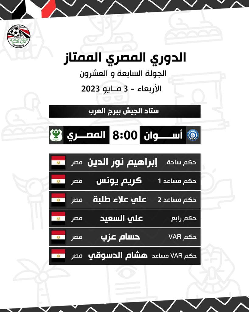 حكام مباراة أسوان أمام المصري