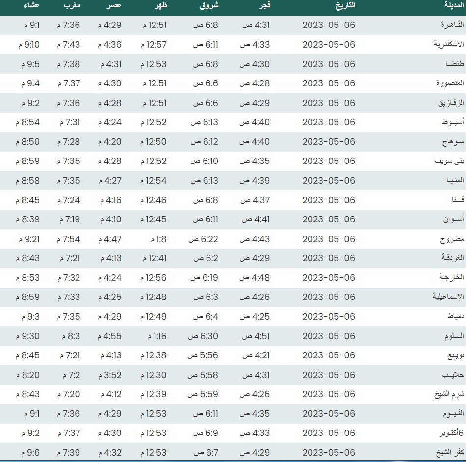 مواقيت الصلاة اليوم القاهرة والمحافظات