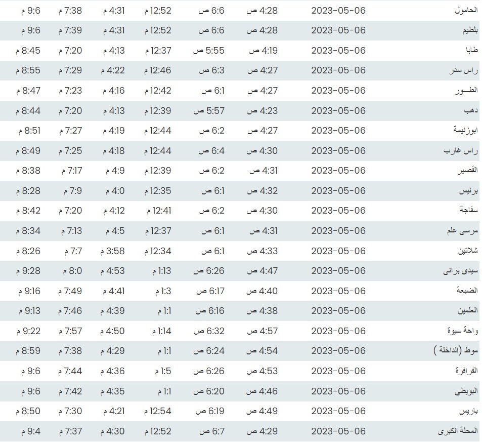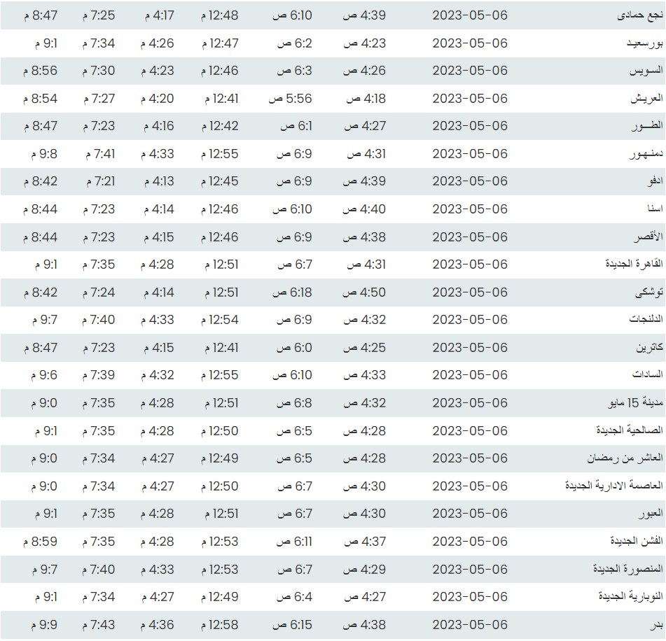 مواقيت الصلاة اليوم بتوقيت القاهرة