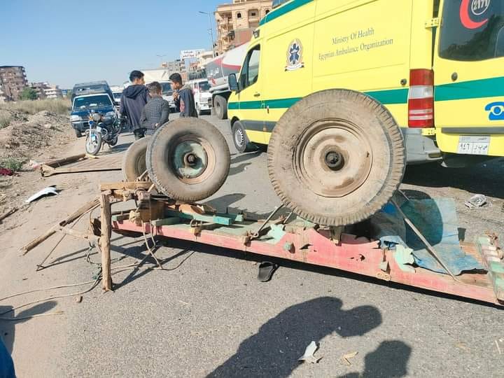 إصابة شخصين ونفوق حصان في تصادم ميكروباص وعربة كارو بالغربية (صور)