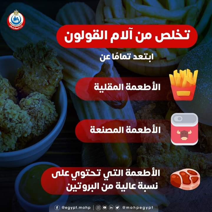 وجهت وزارة الصحة نصائح للتخلص من آلام القولون من خلال تجنب تناول بعض الأكلات منها: