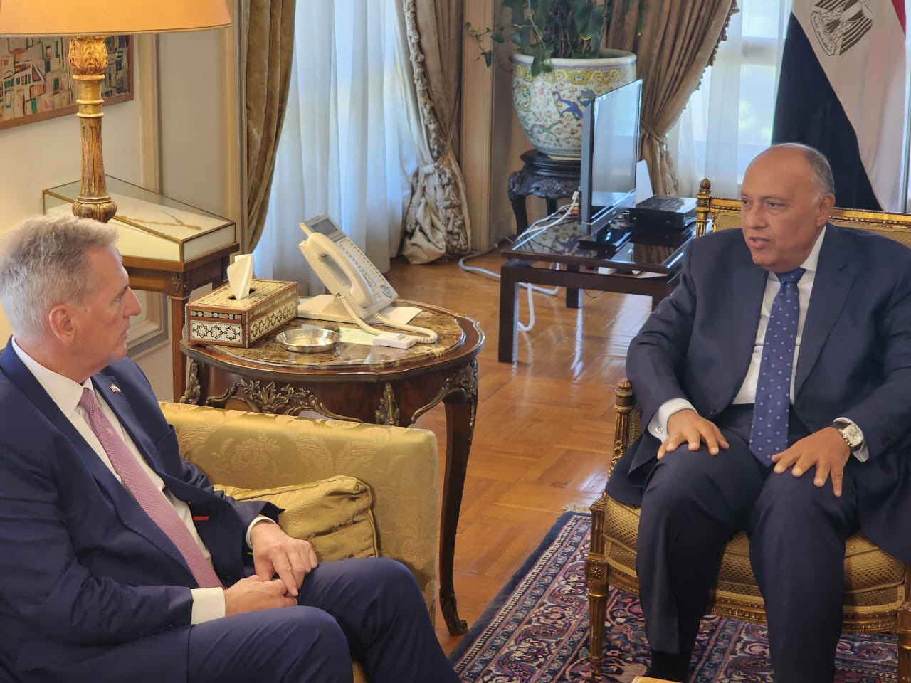 بدأ اللقاء الثنائي بين سامح شكرى، وزير الخارجية، وكيفين مكارثي رئيس مجلس النواب الأمريكي بمقر وزارة الخارجية فى القاهرة اليوم.