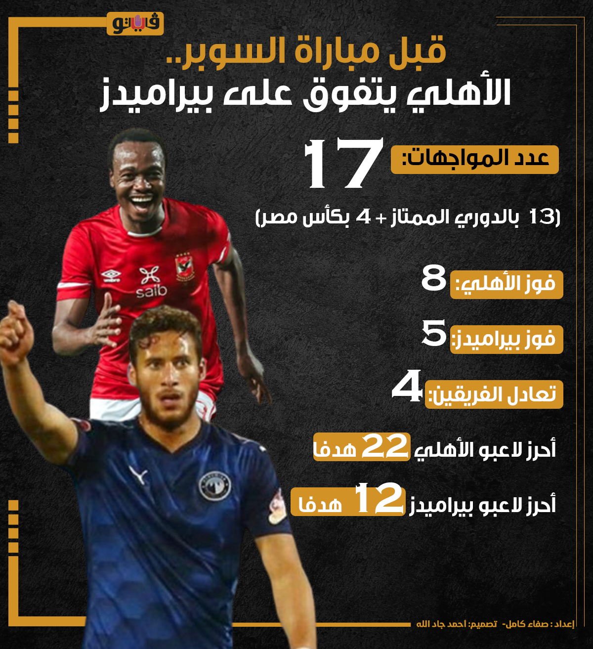 قبل مباراة السوبر..الأهلي يتفوق على بيراميدز (إنفوجراف)
