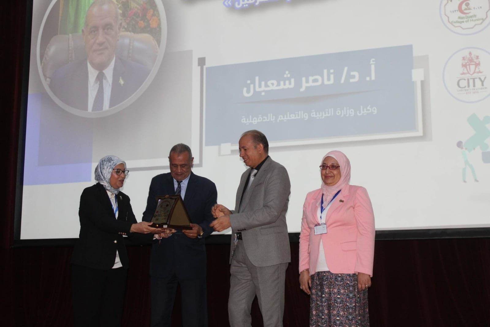 وذلك بحضور الدكتور شريف يوسف خاطر رئيس جامعة المنصورة، الدكتور أشرف طارق حافظ نائب رئيس الجامعة للدراسات العليا والبحوث، الدكتورة أمينة النمر عميد كلية، الدكتور اشرف شومة عميد كلية الطب، الدكتورة منال عيد عميد كلية الصيدلة، حازم نصر نائب رئيس تحرير الاخبار، الدكتور الشعراوى كمال المدير التنفيذى للمستشفيات والمراكز الطبية،الدكتور شريف مكين وكيل وزارة الصح، الأستاذ ناصر شعبان وكيل وزارة التربية والتعليم، الدكتورة ناهد قنديل وكيل كلية التمريض للدراسات العليا والبحوث واعضاء هيئة التدريس ولفيف من أعضاء التدريس.