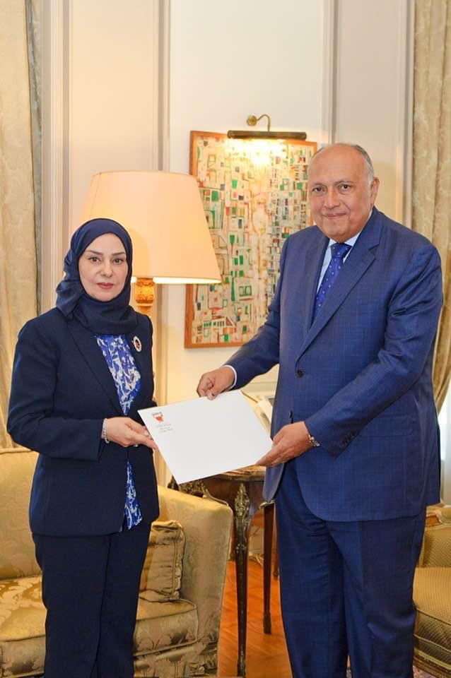 سفير مملكة البحرين لدى مصر تقدم نسخة من أوراق اعتمادها إلى سامح شكري
