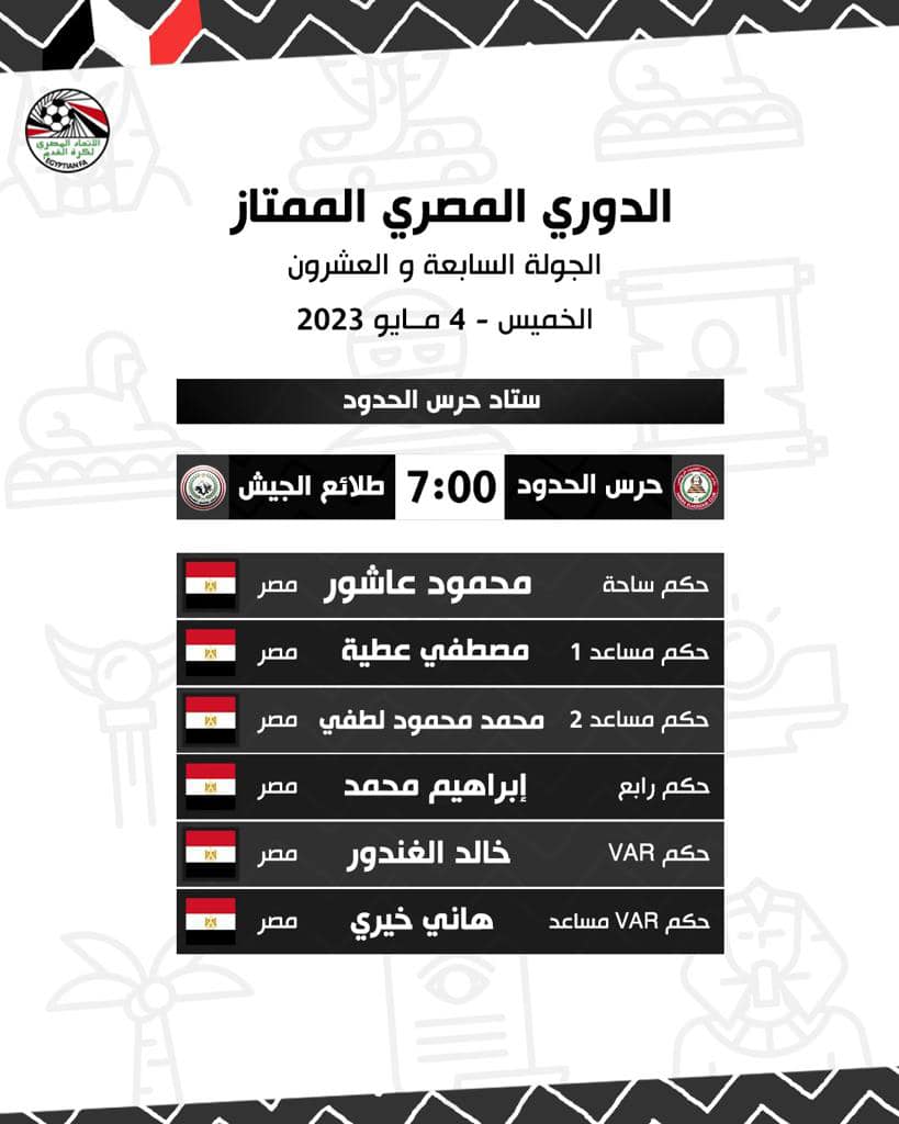 حرس الحدود ضد الجيش الخميس 4 مايو..7.00 مساء باستاد حرس الحدود