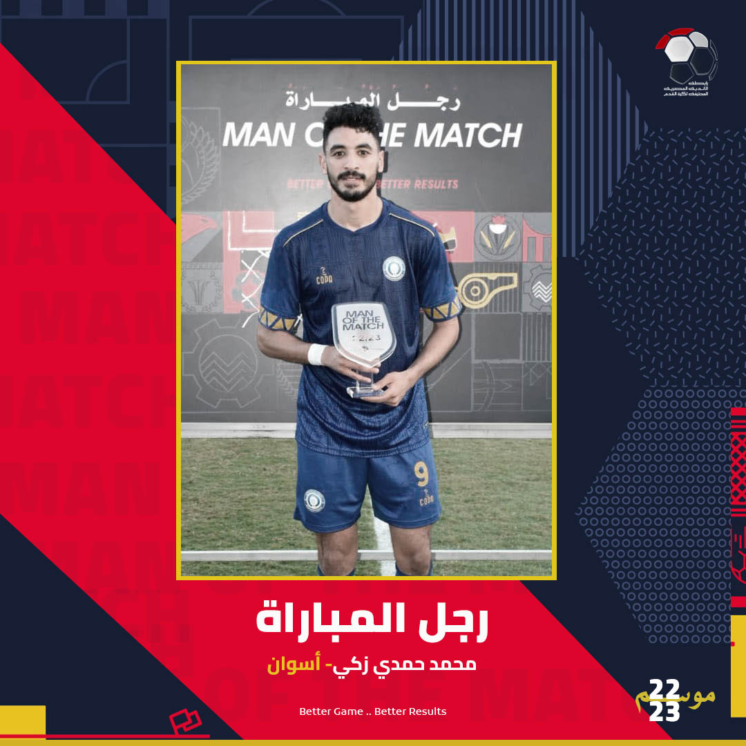 الدوري الممتاز، محمد حمدي زكي رجل مباراة أسوان والمصري