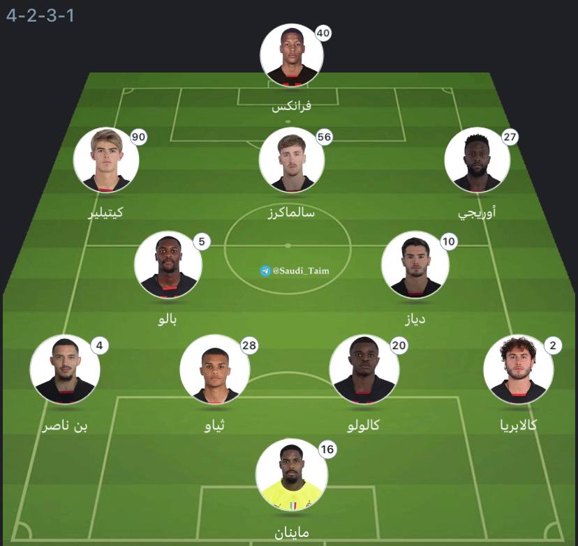 خط الوسط: بن ناصر، دياز، بالو، سالماكرز، كيتيلير