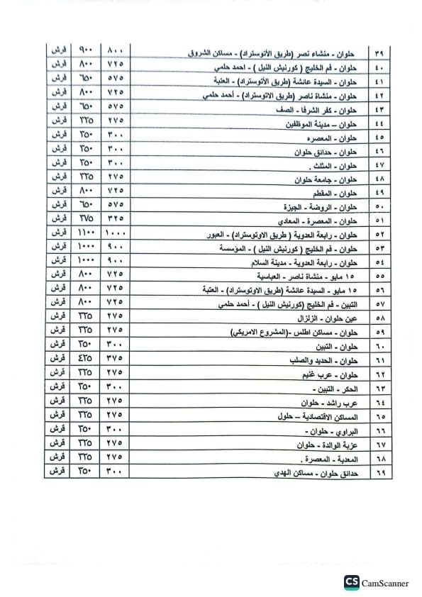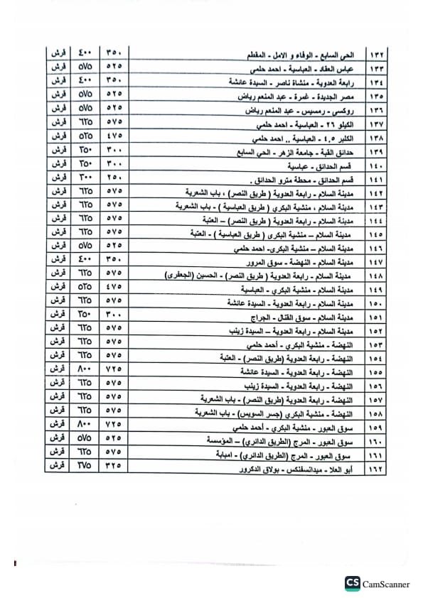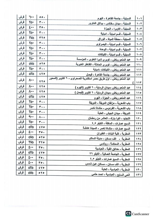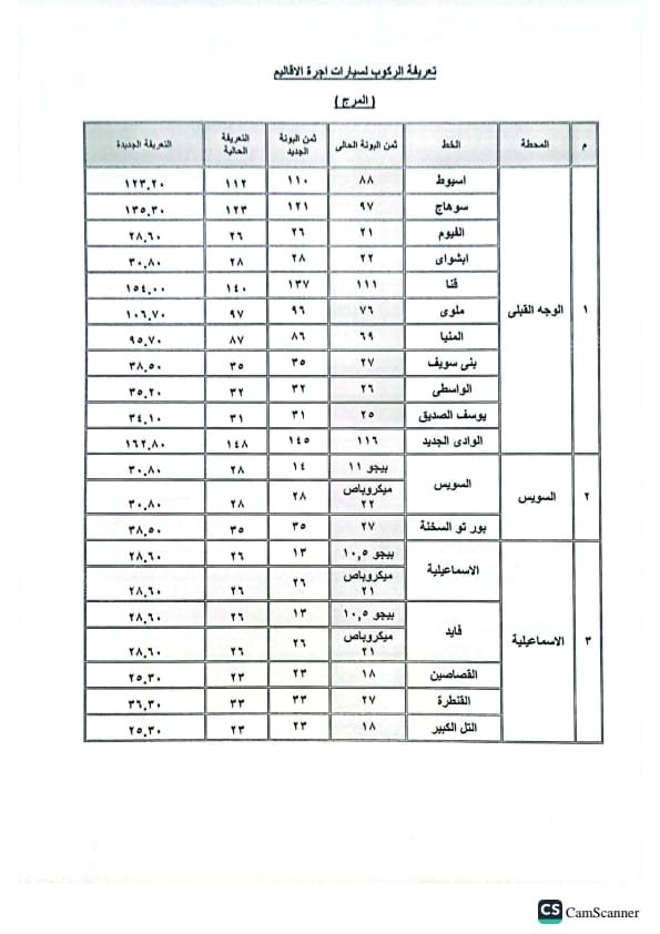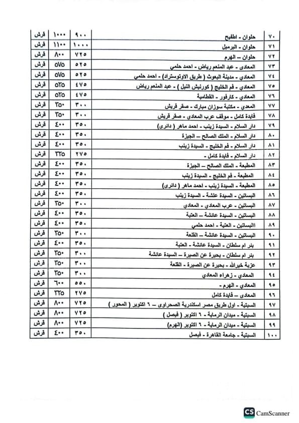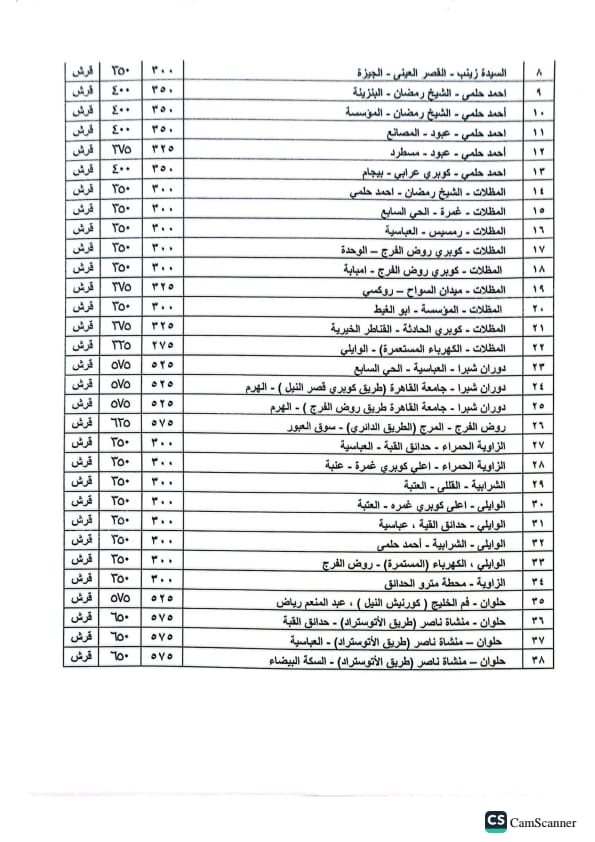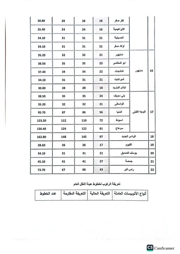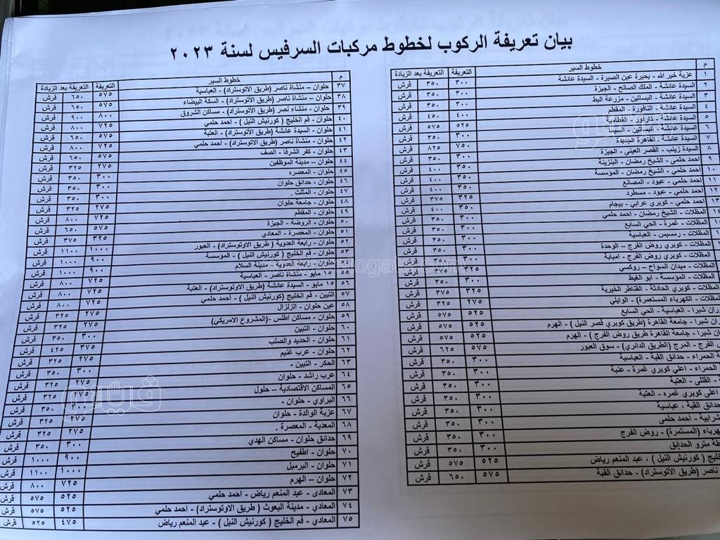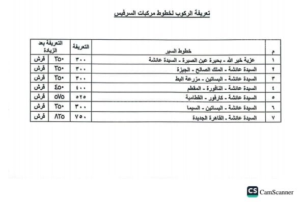تعريفة ركوب السرفيس والنقل العام والأقاليم بمحافظة القاهرة