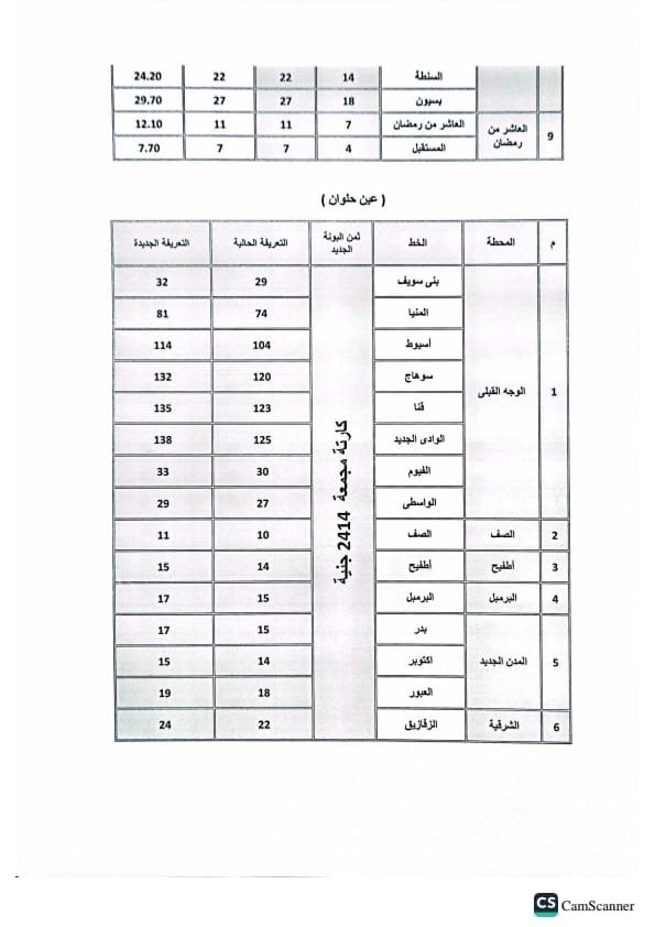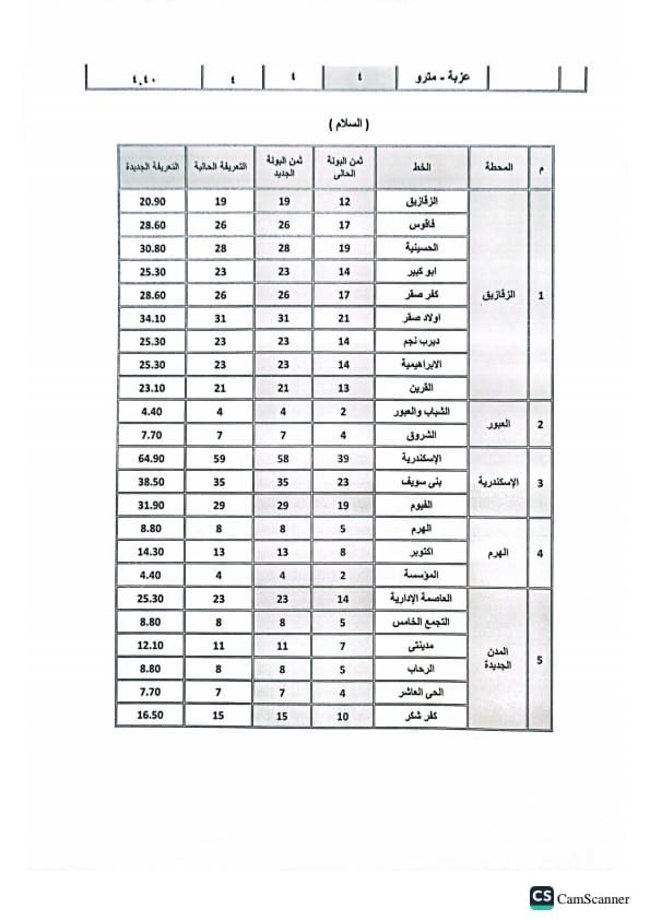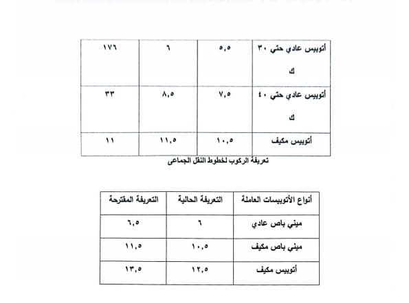 وأشار محافظ القاهرة إلى أن الزيادة تراوحت فى تعريفة السرفيس بين 50 قرشًا لمعظم الخطوط، ولم تتجاوز 1 جنيه للخطوط الطويلة التى تصل لأكثر من 40 كم، كما زادت تعريفة أتوبيسات هيئة النقل العام بمقدار 50 قرشًا لأغلب الخطوط و1 جنيه لبعض الخطوط المميزة والتى تخدم المناطق البعيدة، كذلك تم تعديل تعريفة الركوب بمواقف الأقاليم بما لا يجاوز 10%.