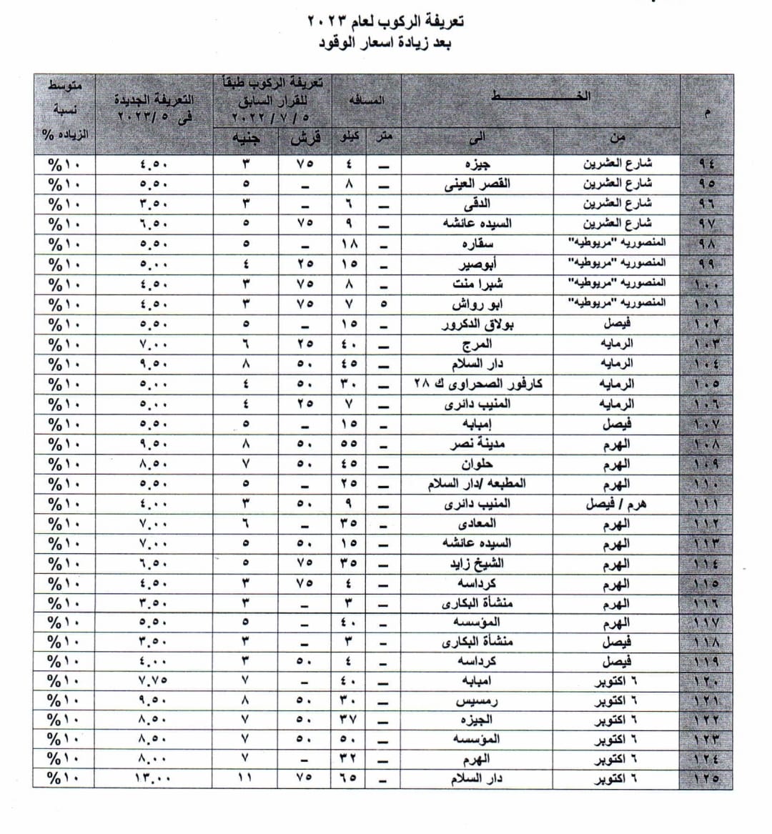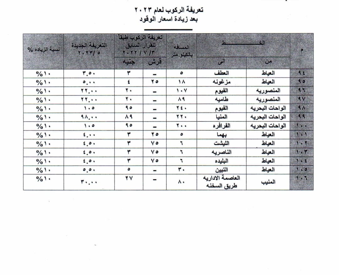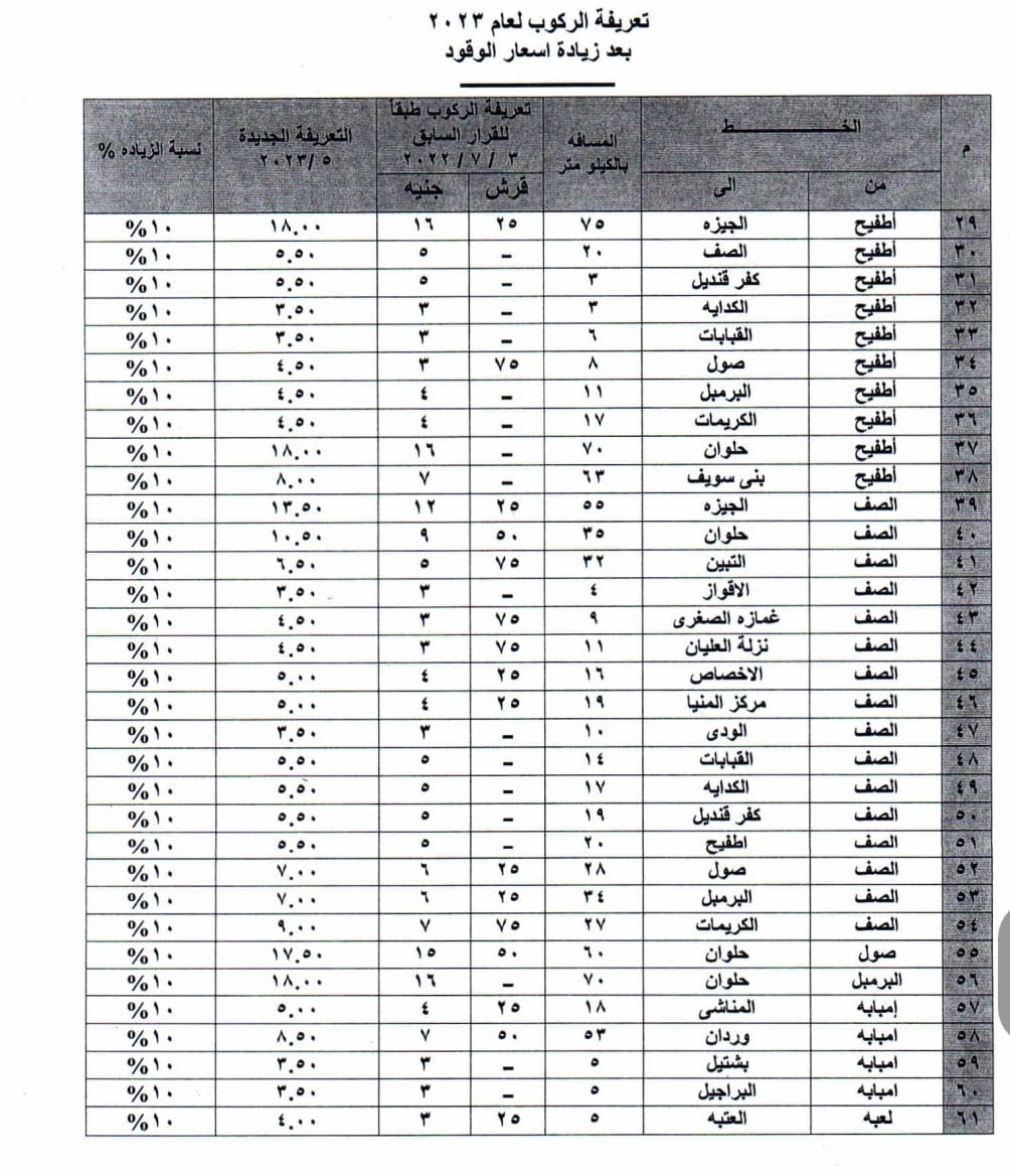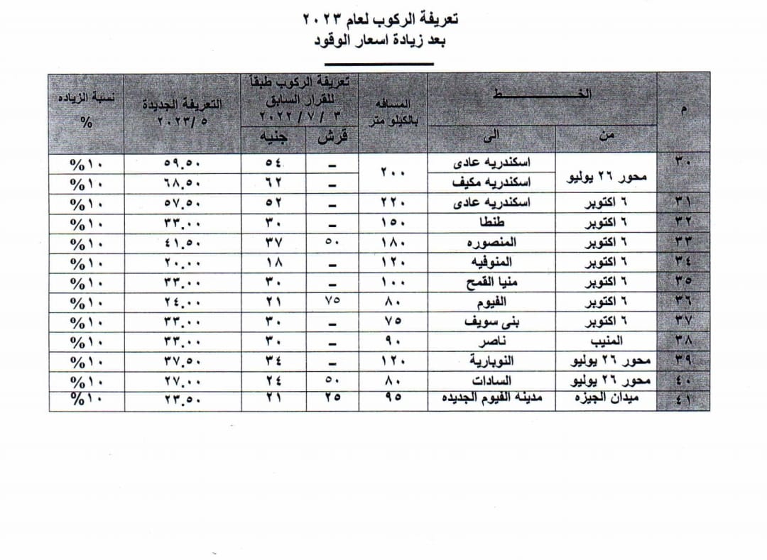 تعريفة الركوب الجديدة بالجيزة