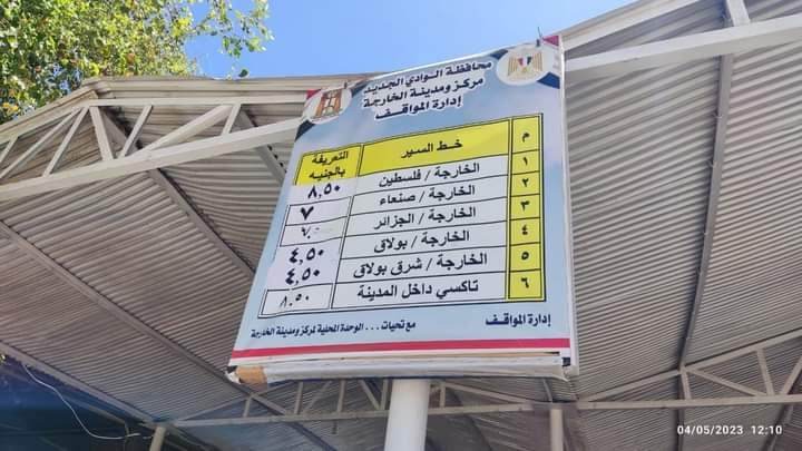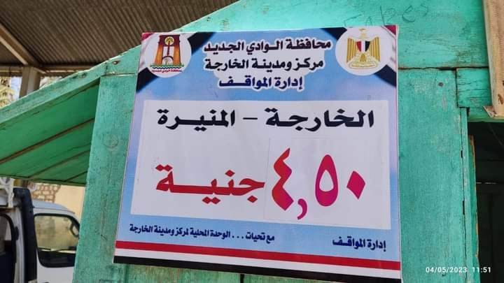 تابع سيد محمود سكرتير عام المحافظة مرافقا له جهاد المتولي رئيس مركز ومدينة الخارجة ومعتمد عبد المعتصم مدير المواقف بالوادى الجديد لموقف الأقاليم، حيث تفقد موقف الأقاليم والتأكد من وضع التعريفة الجديدة للأجرة داخليا وخارجيًا، كما تم وضع التعريفة على موقف المنيرة وقرى مركز الخارجة.
