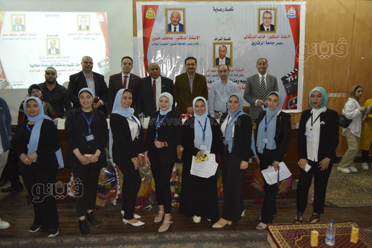 وجه وكيل كلية الآداب الشكر للدكتور”خالد الدرندلي” رئيس جامعة الزقازيق ونائب رئيس الجامعة لشئون التعليم والطلاب ودكتور محمد غريب رئيس قسم الإعلام وجميع القائمين على اليوم نظرا للتنظيم المتميز للاحتفالية.