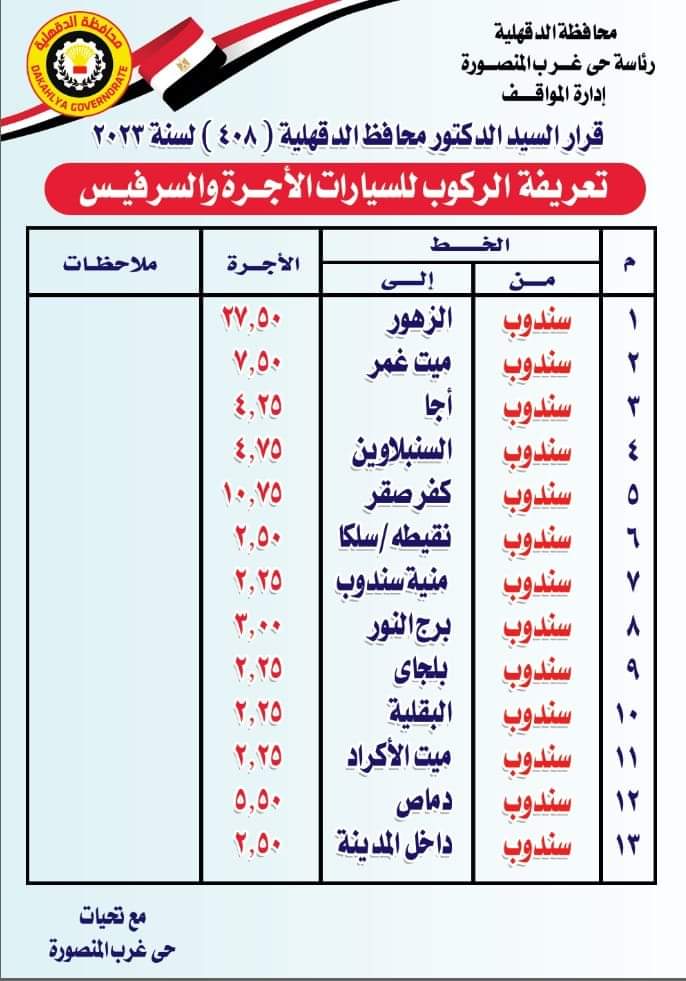 رئيس حي غرب المنصورة يتفقد التزام السائقين بتطبيق التعريفة الجديدة (صور)