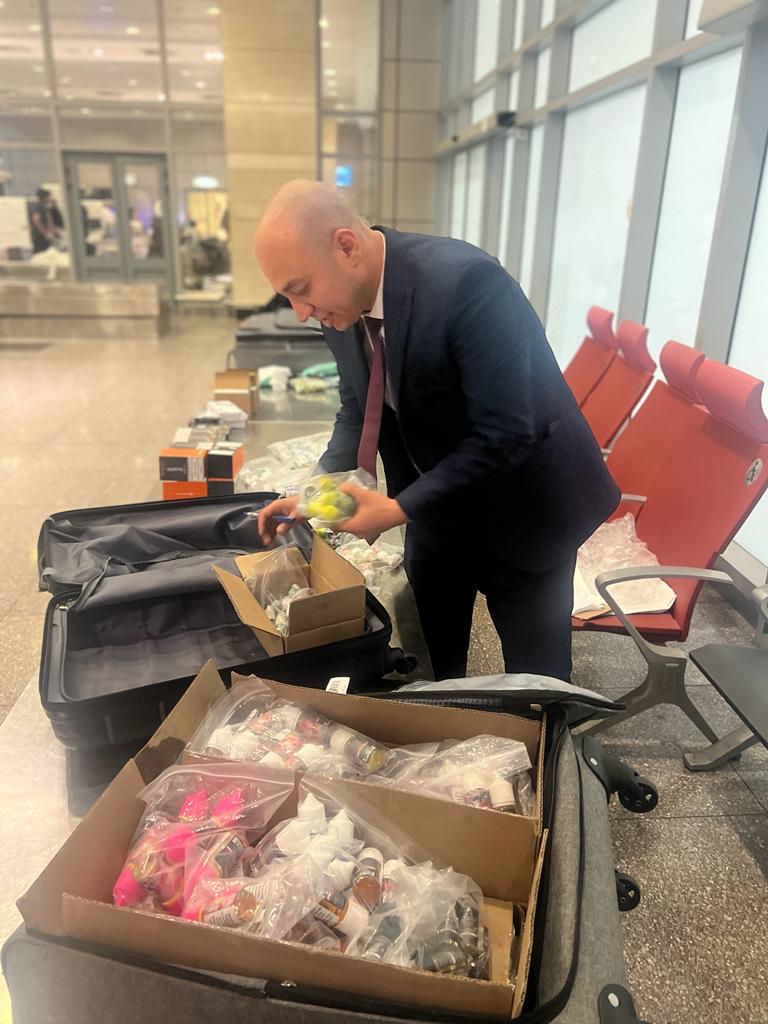 بينما تم ضبط الراكب الثاني بواسطة محمد جمال فرج مأمور اللجنة الجمركية وعبد الله شحاته مأمور الجمرك ومحمد موافي من إدارة الفحص بالأشعة ومحمود مصطفي محمد مأمور الجمرك في التفتيش اليدوي، تحت إشراف عمرو عطية الدسوقي.