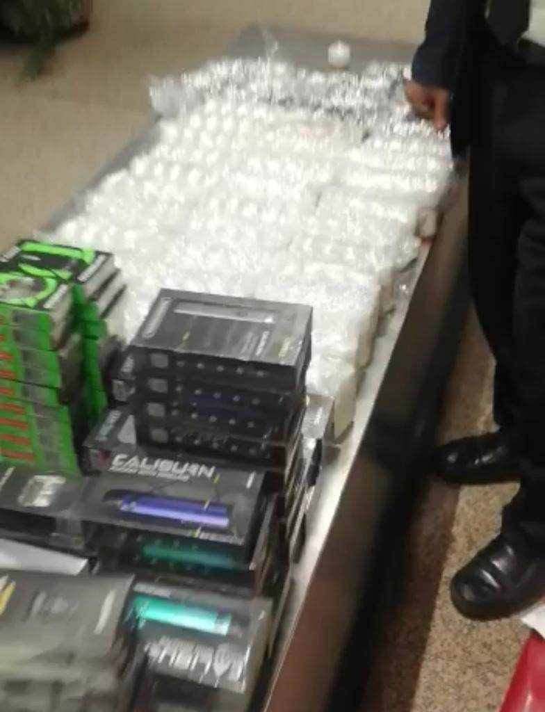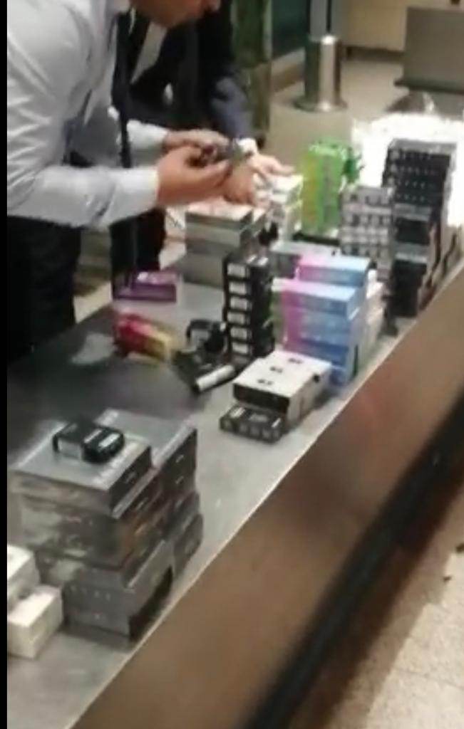 أثناء إنهاء الإجراءات الجمركية علي ركاب رحلة الخطوط المصرية القادمة من دبي استوقف أحمد صبري عطية مأمور الجمرك المعين علي لجنة الخط الأخضر أحد الركاب أثناء محاولته الخروج من بوابة اللجنة الجمركية والذي أنكر حوزته لما يجب الإفصاح عنه او ما يستحق عنه ضرائب ورسوم جمركية، وبتفتيش حقائبه علي جهاز الفحص بالأشعة بواسطة كل من أحمد مدحت فهمي مأمور الجمرك ومحمود أحمد محمد رئيس القسم واللذان تلاحظ لهما وجود كثافات معتمة بكميات كبيرة داخل حقائب الراكب، قام إبراهيم عامر مدير الحركة المشرف على صالة الوصول بمبني الركاب رقم ٣ بتكليف محمد فتح الله أبو العيون مأمور الجمرك بتفتيش حقائب الراكب يدويا مما أسفر عن وجود كمية كبيرة من زيوت ومستلزمات الشيش الإلكترونية، قام الدكتور صابر عبد الحميد مدير الجمرك بتكليف لجنة مكونة من محمد نبيل وعبد الله حمدي ومحمد قنديل ووليد حجاج مآمير الجمرك وذلك لجرد وعد وتصنيف وتحريز المضبوطات التي بلغ عددها ٦٣٠ عبوة من زيوت ومستلزمات الشيش الإلكترونية.