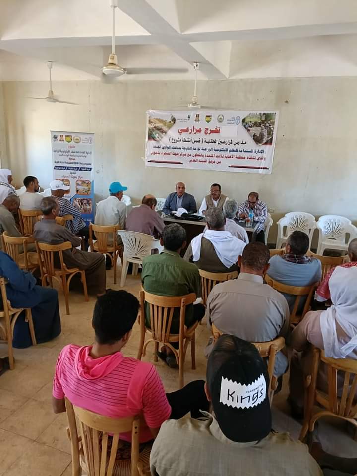وأوضح مدير المشروع، أن المشروع بدأ ينفذ مجموعة من المدارس الحقلية من ضمنها مدارس النخيل بعدد 18 مدرسة حقلية في قري المشروع، هدفها الممارسات الزراعية المستدامة وتنفيد الممارسات والتوقيتات السليمة، وتباعا سيتم إعداد حفلات تخرج لباقي المحاصيل التي تم زراعتها.
