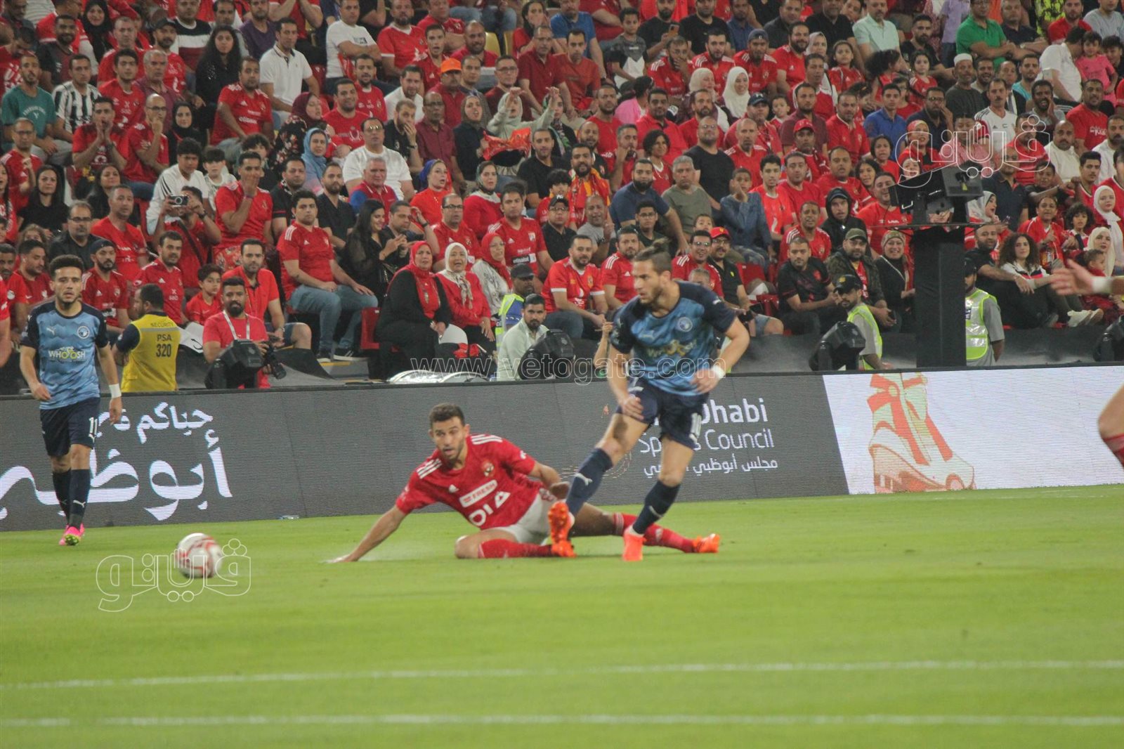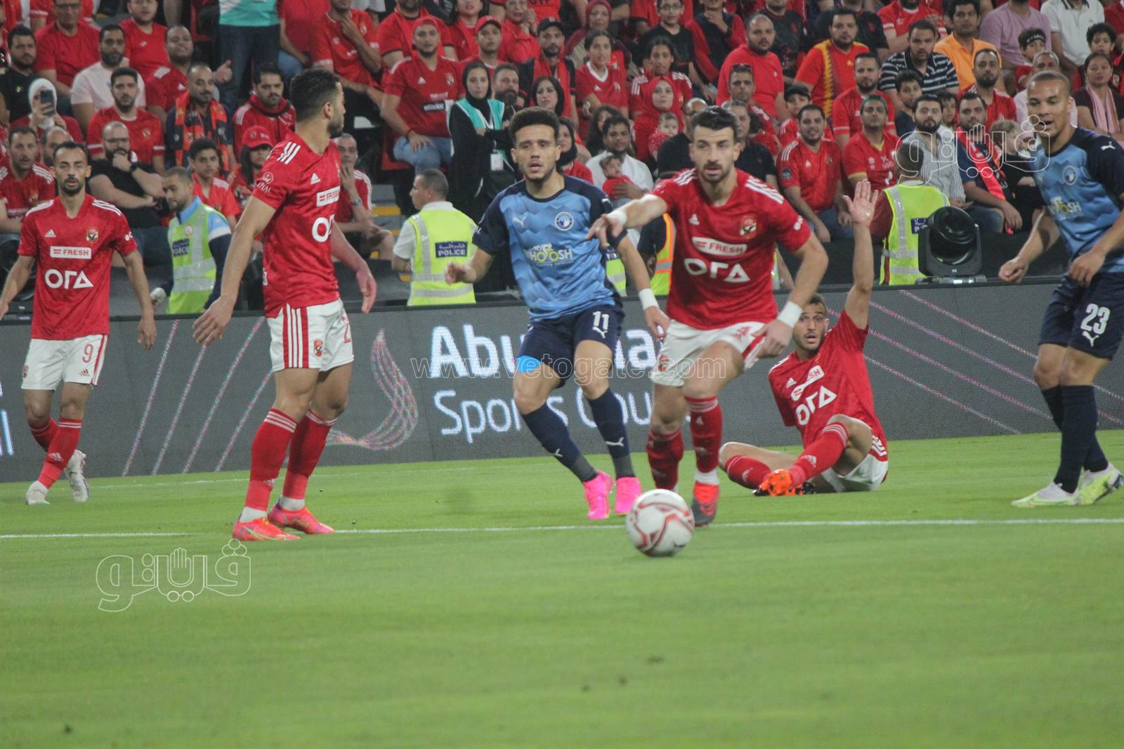 السوبر المصري، رصدت عدسة فيتو أمام ستاد محمد بن زايد، جماهير الأهلي وهي تلتف حول مشجع يرتدي تيشرت الزمالك وتردد هتافات للقلعة الحمراء.