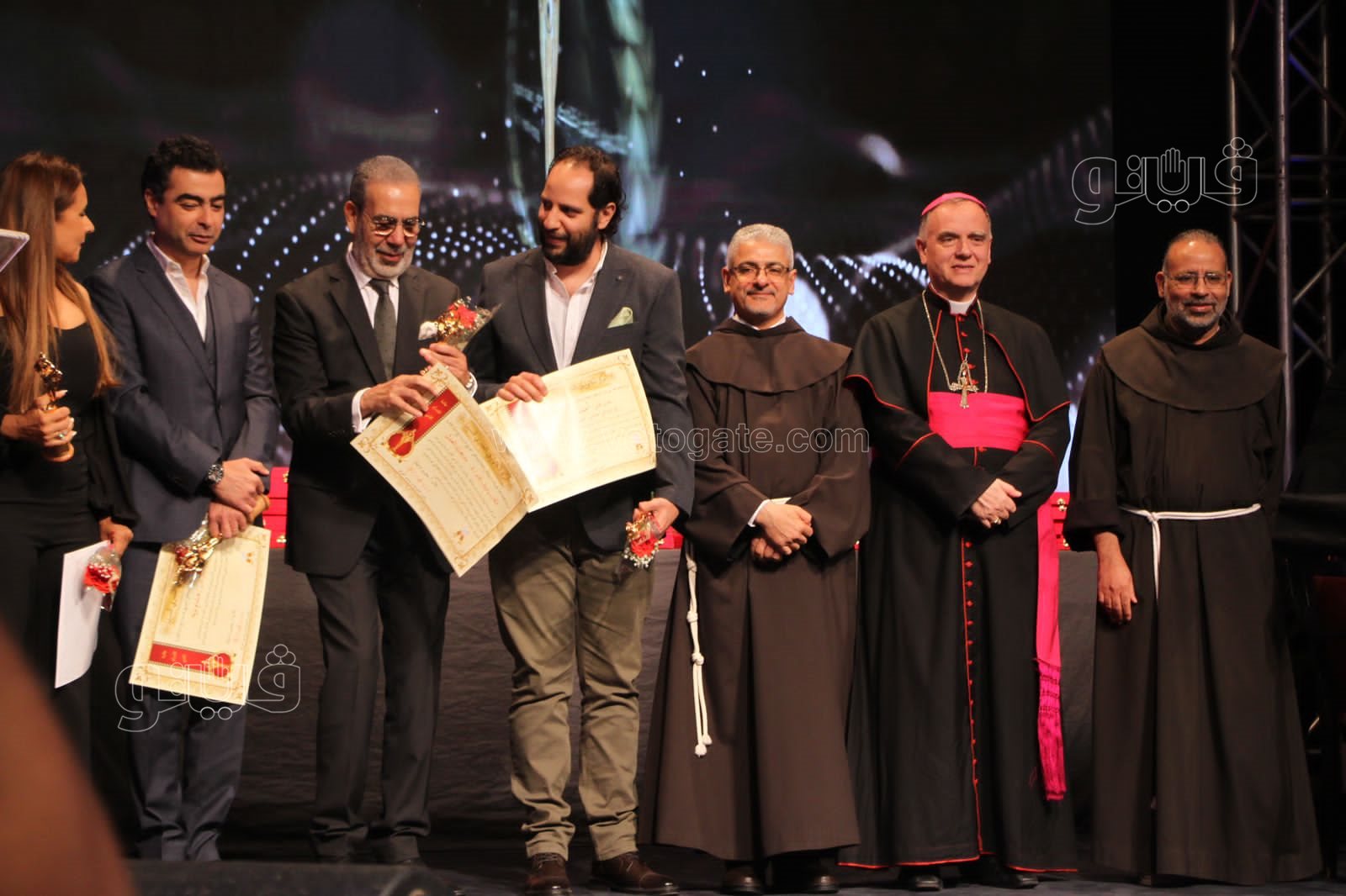 كرم مهرجان المركز الكاثوليكي في دورته الـ 71 برئاسة الأب بطرس دانيال كلا من الفنان أحمد أمين ومدحت العدل والموسيقار هشام نزيه