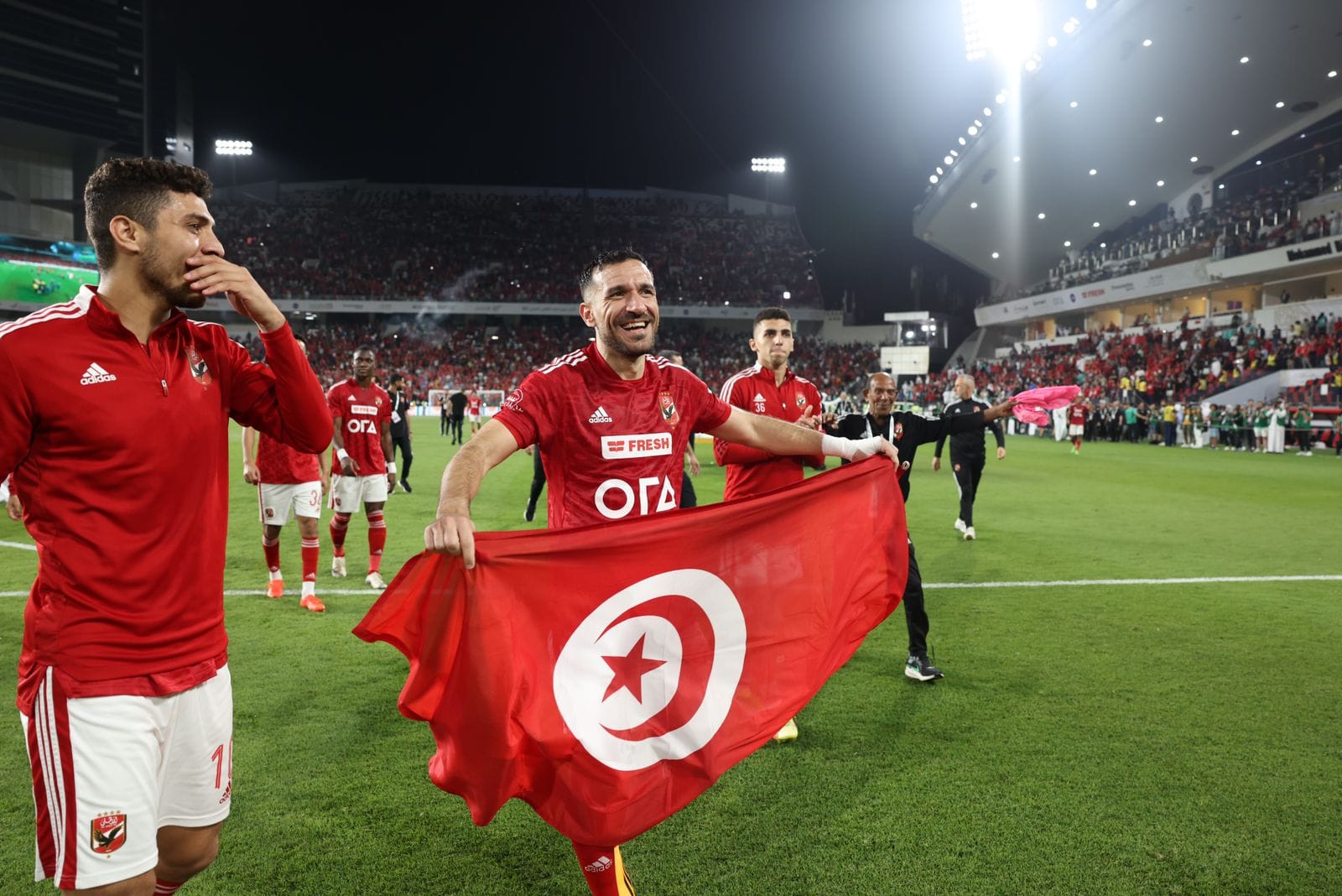 السوبر المصري، حرص علي معلول لاعب النادي الاهلي، على الاحتفال بلقب السوبر المصري مرتديًا علم تونس باستاد محمد بن زايد.
