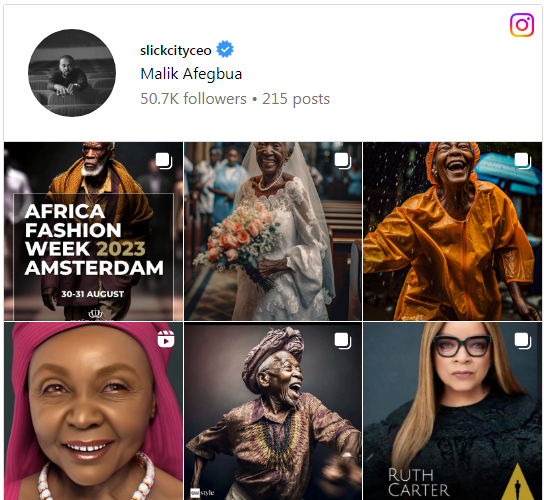 وأكَّد المصمِّم النيجيري لوكالة الأنباء الفرنسية أنَّ هذه المجموعة من الصور هي أيضًا وليدة ذكاء اصطناعي واستخدم برنامج "ميدجورني" لتصميمها وبرنامج "فوتوشوب" لإدخال تعديلات عليها.