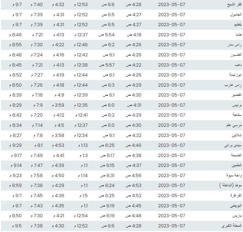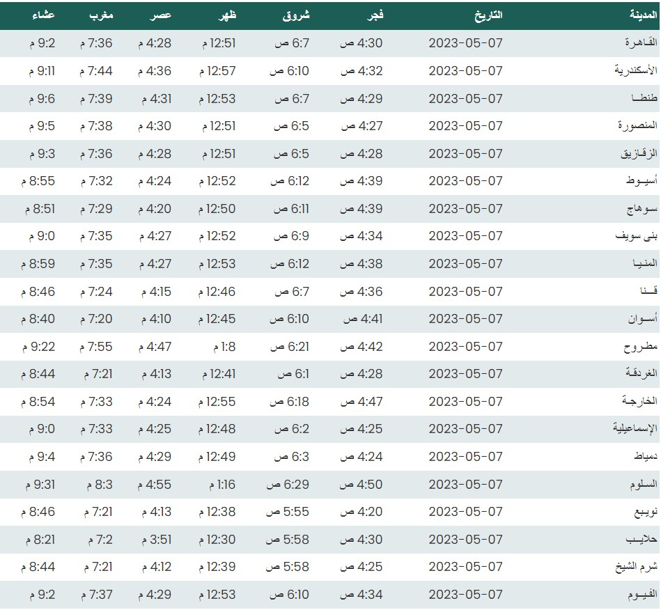 مواقيت الصلاة اليوم بتوقيت القاهرة