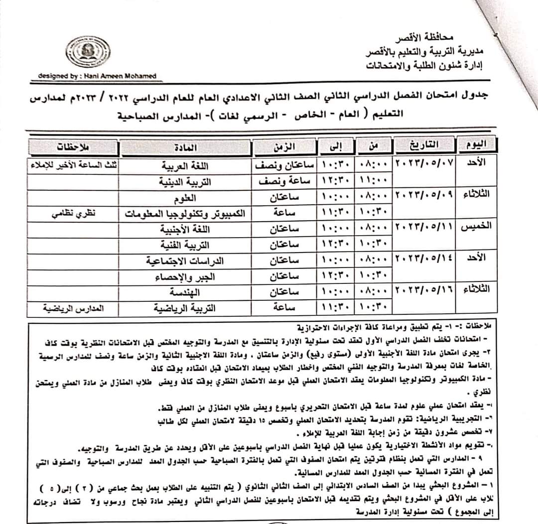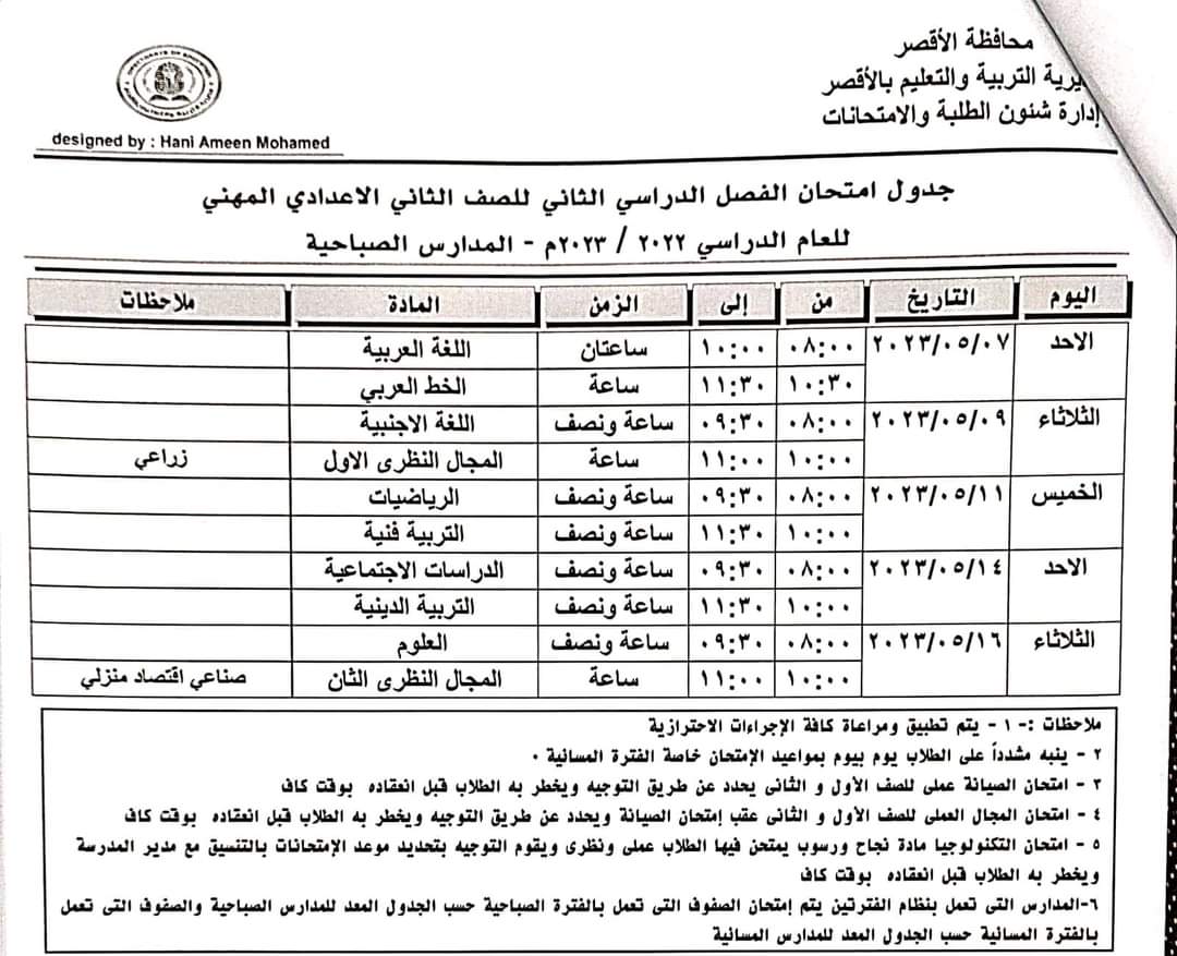 تعرف على موعد بدء امتحانات الصف الثاني الإعدادي العام والمهني بالأقصر (صور)