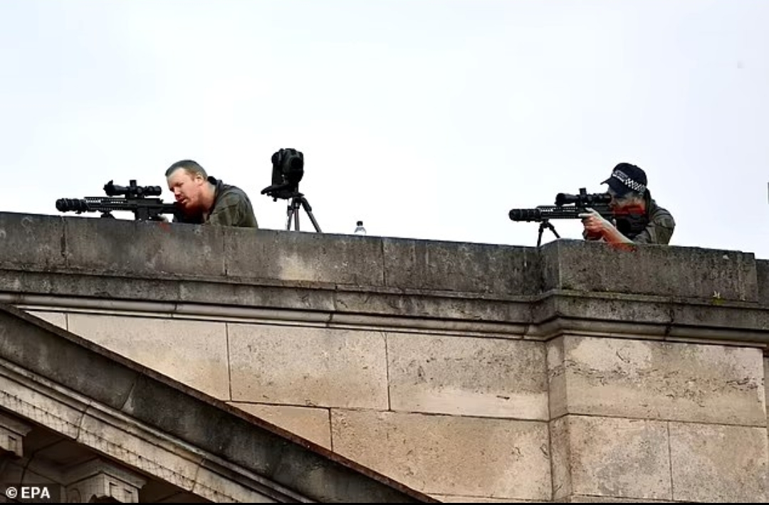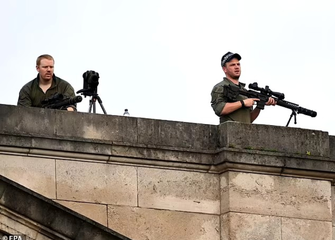 وعلى مدى أسبوع تم نشر 29 ألف عنصر أمن في وسط لندن وستستخدم الشرطة تقنية التعرّف على الوجوه، وسيتم نشر القناصة على الأسطح بالإضافة إلى خطر الإرهاب، تراقب الشرطة عن كثب نشطاء المناخ الذين حضر كثير منهم في الأيام الأخيرة الى لندن كما تراقب مناهضي النظام الملكي.