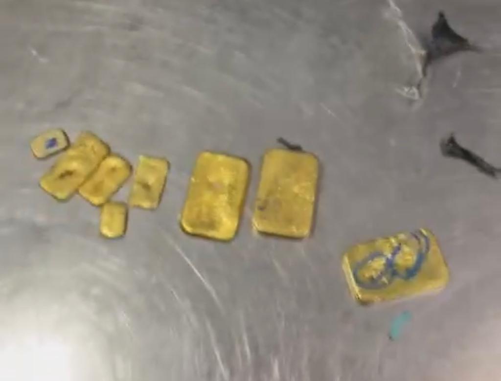 وقام أحمد سيد إبراهيم صالح مدير الحركة المشرف على صالة الوصول بمبني الركاب رقم ٢، بتكليف دينا حسن عبد الحميد مأمور الجمرك، بتفتيش حقيبة الراكب يدويا مما اسفر عن وجود ٥ سبائك ذهبية اخفاهم الراكب في جيوب بنطلون بالحقيبة بعدما لفهم بأوراق كربون، قام محمود عبد النبي مدير الجمرك، بتكليف لجنة مكونه من محمود عبد المطلب ومصطفي حامد وأحمد حمدي عبد العال ومحمد جمال مآمير الجمرك، لعد ووزن وتحريز المضبوطات والتي بلغ عددها ٥ سبائك ذهبية بوزن إجمالي ٤٣١ جراما.