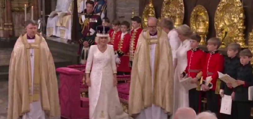 توجت الملكة كاميلا قرينة الملك تشارلز الثالث، اليوم السبت، ملكة على المملكة المتحدة، بعد تتويج زوجها وإرتدائها التاج الملكي.
