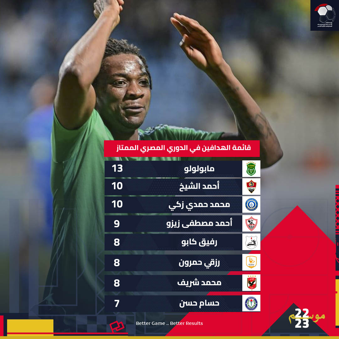 مابولولو يتصدر ترتيب هدافي الدوري المصري الممتاز
