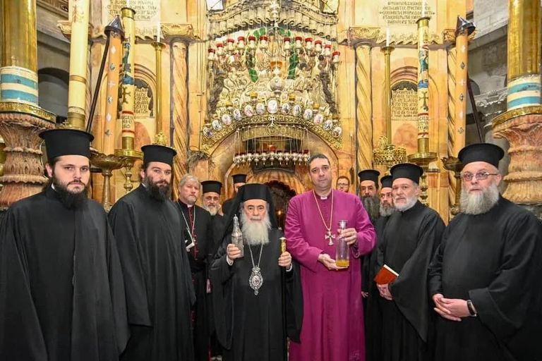 وتابع أن البطريرك ثيوفيلوس الثالث كان قد ترأس في كنيسة القيامة في القدس الشرقية مطلع شهر مارس الماضي شعائر تقديس الزيت الذي استخدم في مباركة ملك بريطانيا تشارلز الثالث.