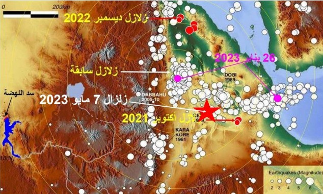 الجدير بالذكر أن الدكتور عباس شراقي أكد وقوع زلزالين شمال إثيوبيا وشرق جيبوتي في شهر يناير الماضي، بعد شهر من زلزالي ديسمبر 2022.