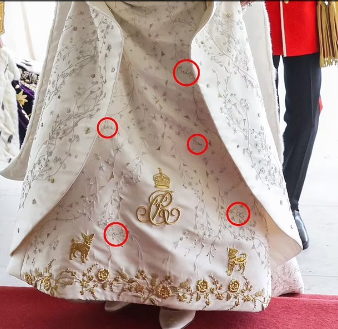 حمل فستان الملكة كاميلا، الذي ارتدته خلال حفل التتويج، بعض الأسماء السرية المطرزة وشملت هذه الأسماء أبناءها وأحفادها، وذلك حسبما ذكرت صحيفة الديلي ميل البريطانية.