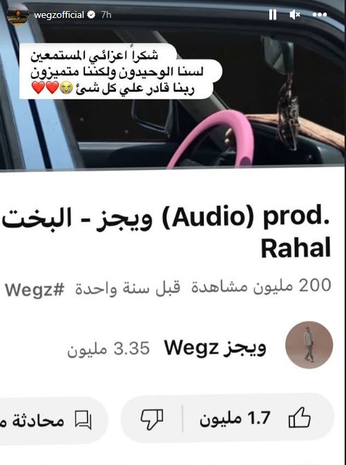 وكتب ويجز عبر خاصية الاستورى قائلا: "شكرا أعزائي المستمعين، لسنا الوحيدون ولكننا متميزون.. ربنا قادر على كل شئ".