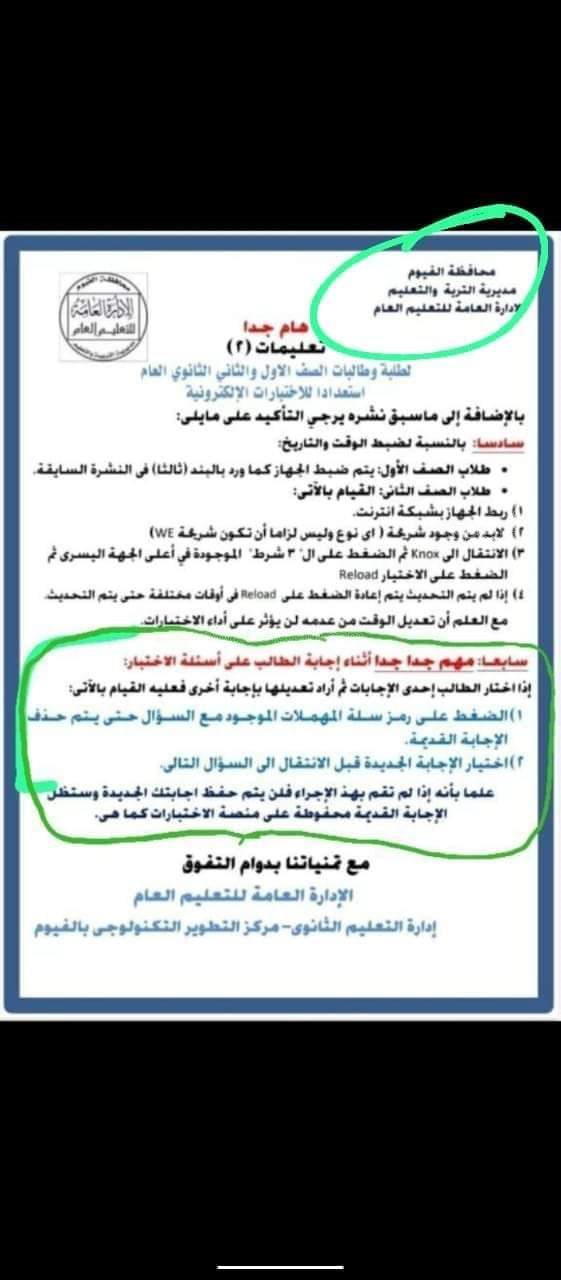 وأكد: لا يوجد أي تغييرات في نظام الامتحان على التابلت ورجاء عدم تداول أي محتوى او منشورات تتسبب في حالة تشكك او جدل دون الرجوع للمصادر الرسمية.