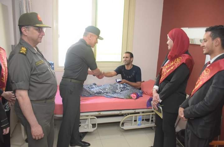 واستقبل مستشفى الحلمية للقوات المسلحة وفد من طلاب الجامعة المتميزين، لزيارة أبطال القوات المسلحة المصابين في العمليات التي تخوضها قوات الجيش ضد الإرهاب ببعض المناطق المحدودة بوسط وشمال سيناء، عرفانًا وتقديرًا لما يقدمه أبناء القوات المسلحة من بطولات وتضحيات دفاعًا عن الوطن وصون مقدساته.