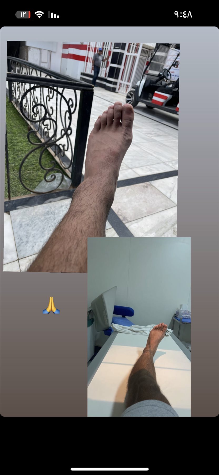 ونشر اللاعب عبر صفحته الرسمية على موقع التواصل الاجتماعي انستجرام صورة لقدمه المصابة.