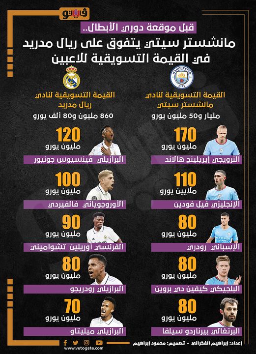 مان سيتي يتفوق على ريال مدريد في القيمة التسويقية للاعبين