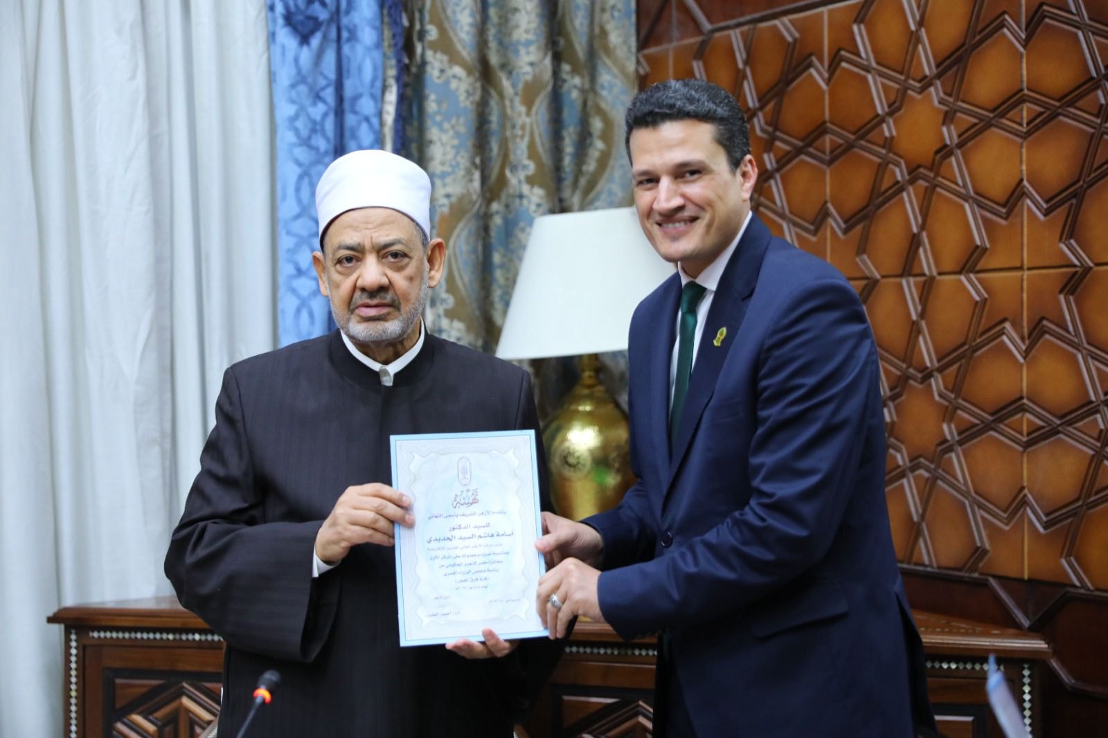 حرص فضيلة الإمام الأكبر على تقديم الدعم لأبنائه الفائزين، وثمن مجهوداتهم الكبيرة، وحثهم على المثابرة في أداء واجبهم الديني والوطني.