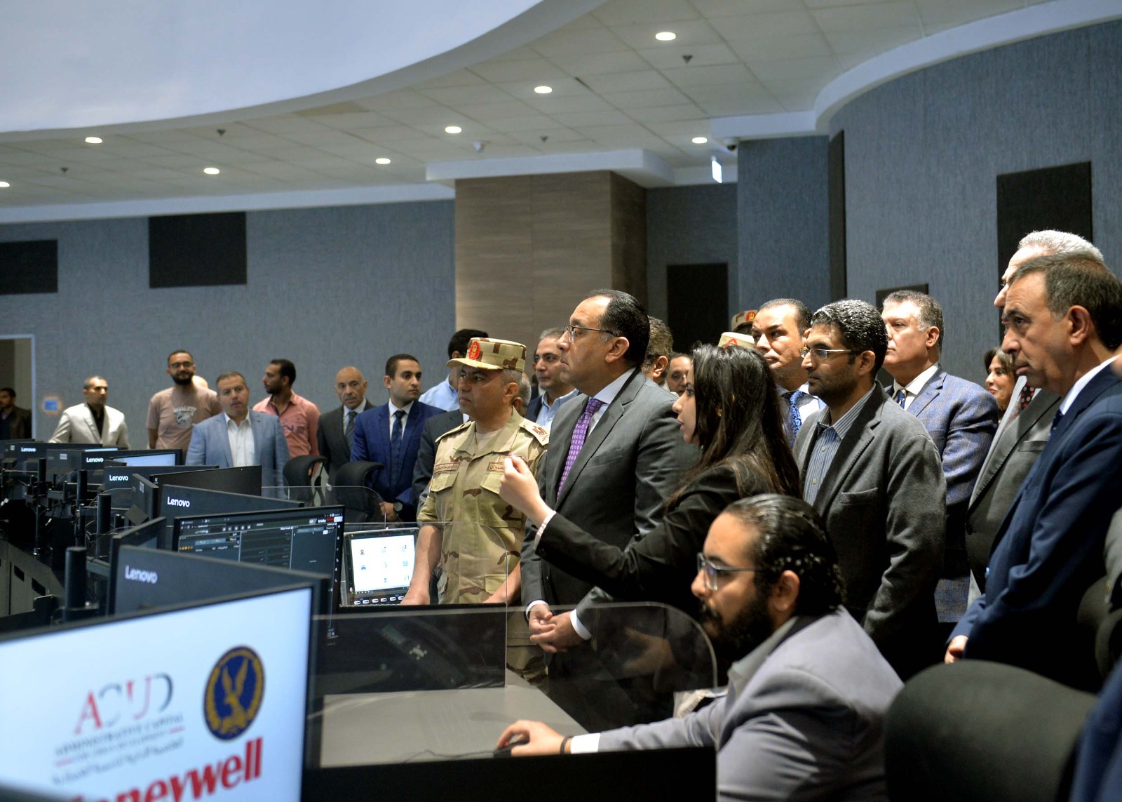 وشاهد رئيس الوزراء ما تضمه إحدى القاعات من شاشات مخصصة لرصد ومراقبة مختلف مناطق العاصمة الإدارية الجديدة، كما توجه الدكتور مدبولي لتفقد مركز البيانات الذي يتم به تجميع مختلف البيانات والمعلومات عن مختلف الوزارات والجهات العاملة بالعاصمة الإدارية الجديدة.